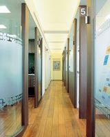 入り口はこの扉が目印です。間接照明の落ち着いた雰囲気の院内です。