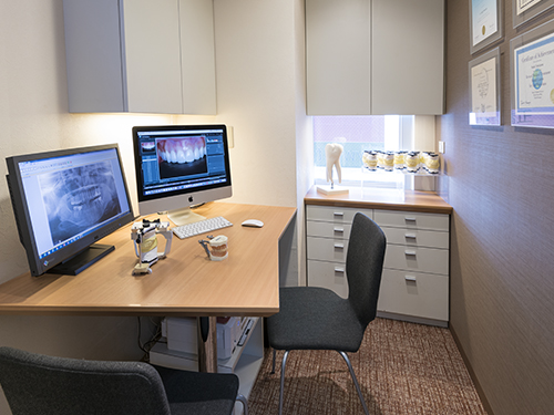 また医院内も患者さんのためにプライバシーを配慮し、リラックスして治療やメインテナンスが受けられるように個室の診察室、クリーニング室、オペ室となっているので、長期にわたる治療でも安心して通院できます。歯科に特化したコンビームCTともいわれる最新型のCT装置が導入され、撮影時間も10秒ほど線量も医科用CTのおよそ10分の1で撮影でき高画質でより正確に、より安全に診査、診断しています。しかも治療はほぼ全て歯科用顕微鏡を用いており、精密、正確、低侵襲な治療を受けることができます。院長は、歯の保存、前歯の審美的治療、矯正専門医との連携治療、インプラントを含む多数歯欠損治療、全顎的な治療を得意としており、他の歯科医院では困難な治療を多く治療をしています。