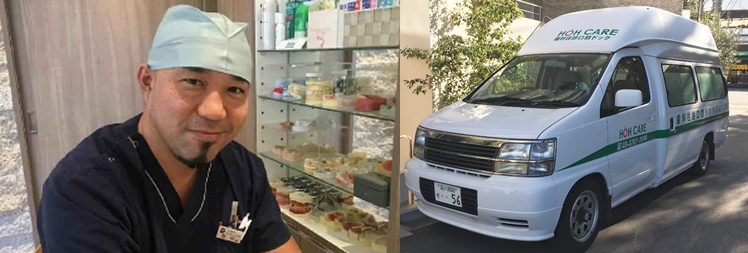 オカムラ歯科医院では、訪問診療にも対応していて、オカムラ歯科二子玉川院より副院長の岡村泰斗先生が、特注の往診車による歯科往診診療も積極的に行っています。