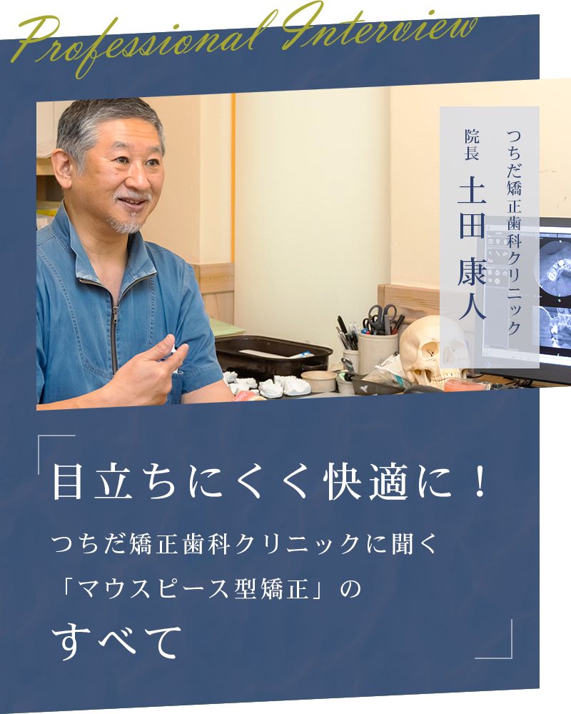 歯列矯正には、ブラケット(ワイヤー)矯正とマウスピース型矯正の、二通りの方法がある。それぞれに長所や短所があるけれど、近年注目されているのはマウスピース型矯正。取り外し可能なアライナー(マウスピース)を装着する治療法だ。今回は歯科矯正専門の歯科医師である「つちだ矯正歯科クリニック」の土田院長に、マウスピース型矯正の実際と、そのメリットを詳しく解説していただいた。