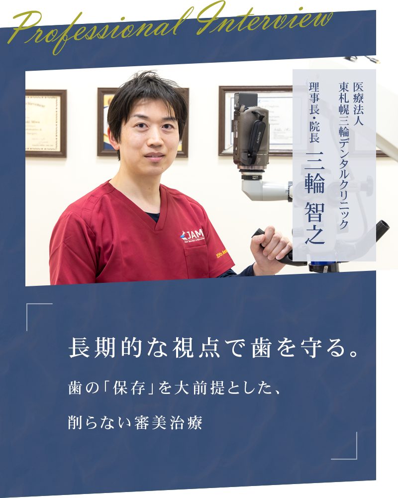 長期的な視点で歯を守る。歯の「保存」を大前提とした、削らない審美治療【北海道札幌市 医療法人 東札幌三輪デンタルクリニック】
