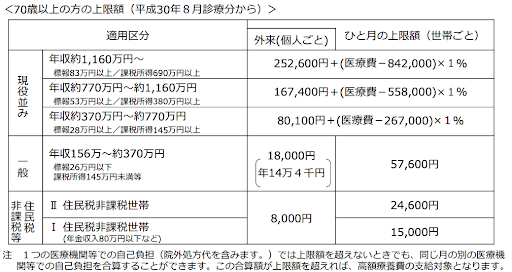 高額療養費制度を利用した場合、70歳以上の方は以下のような上限額となります。